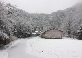 2月1日、市之川公民館の雪景色。積もった雪は2cm前後だったでしょうか。西条市内に積も